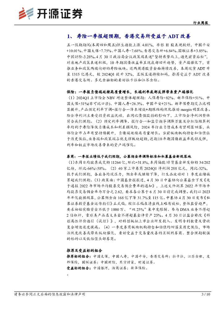 开源证券:非银金融行业周报:寿险一季报超预期,香港交易所受益于ADT改善.pdf