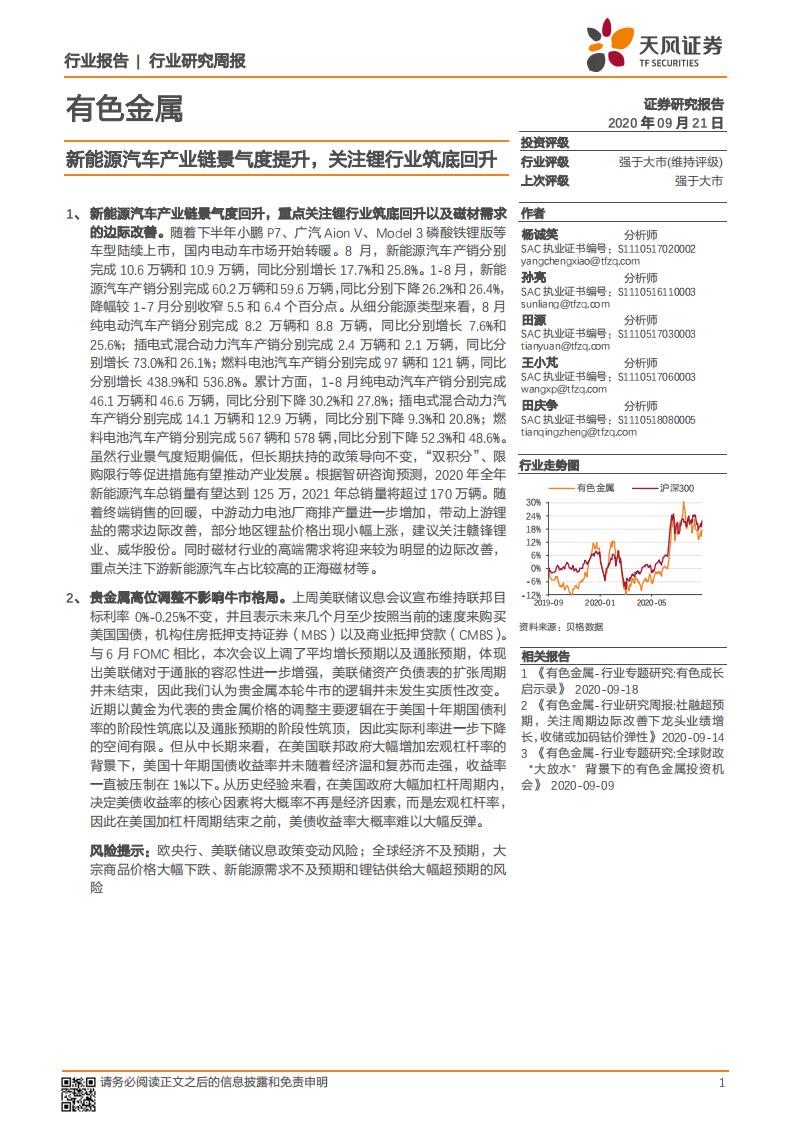 天风证券:有色金属行业研究周报:新能源汽车产业链景气度提升,关注锂行业筑底回升.pdf