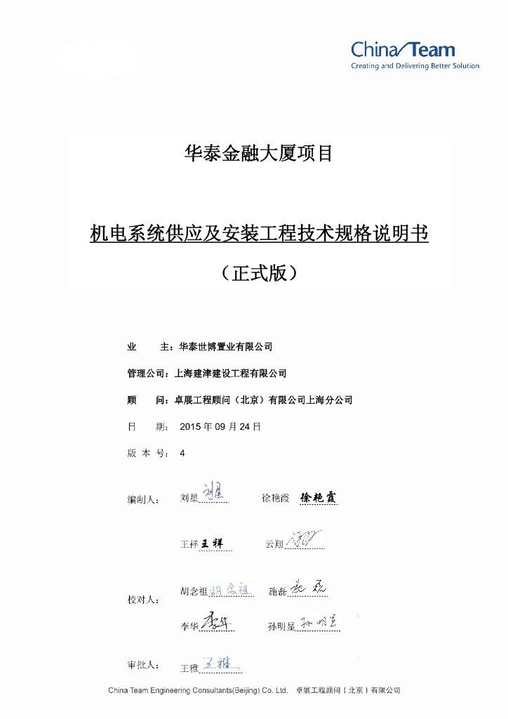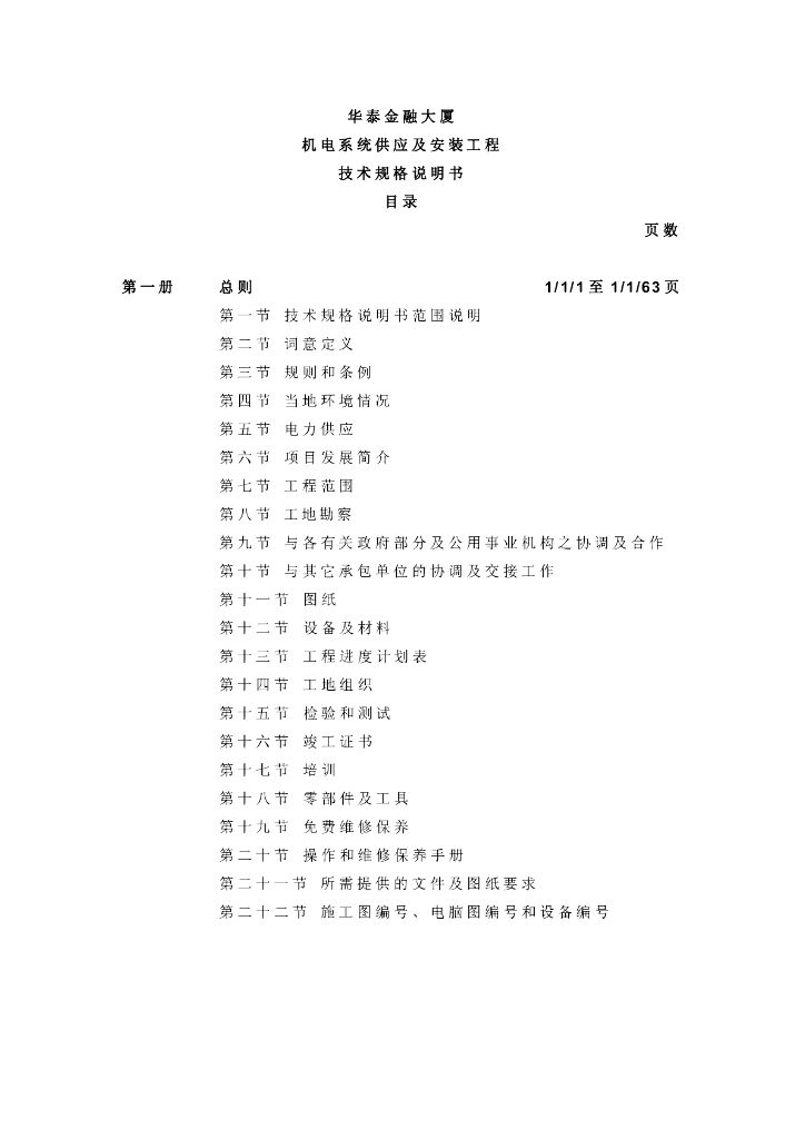 华泰金融大厦-机电系统供应及安装技术规格说明书(千页全风水电).pdf