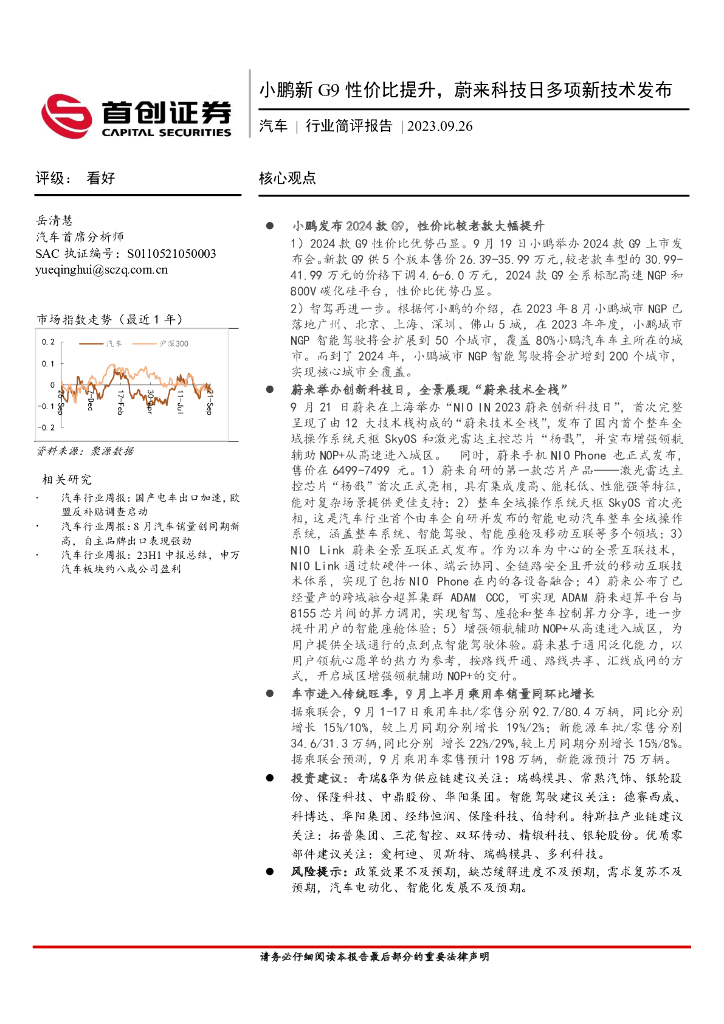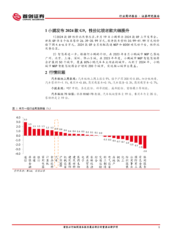 首创证券:汽车行业简评报告:小鹏新G9性价比提升,蔚来科技日多项新技术发布.pdf