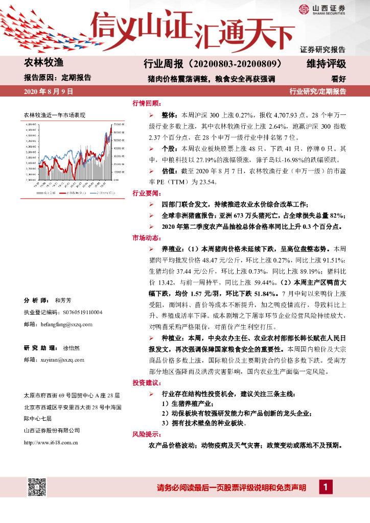 山西证券:农林牧渔行业周报:猪肉价格震荡调整,粮食安全再获强调.pdf