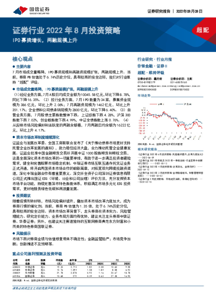 国信证券:证券行业2022年8月投资策略:IPO募资增长,两融规模上升.pdf