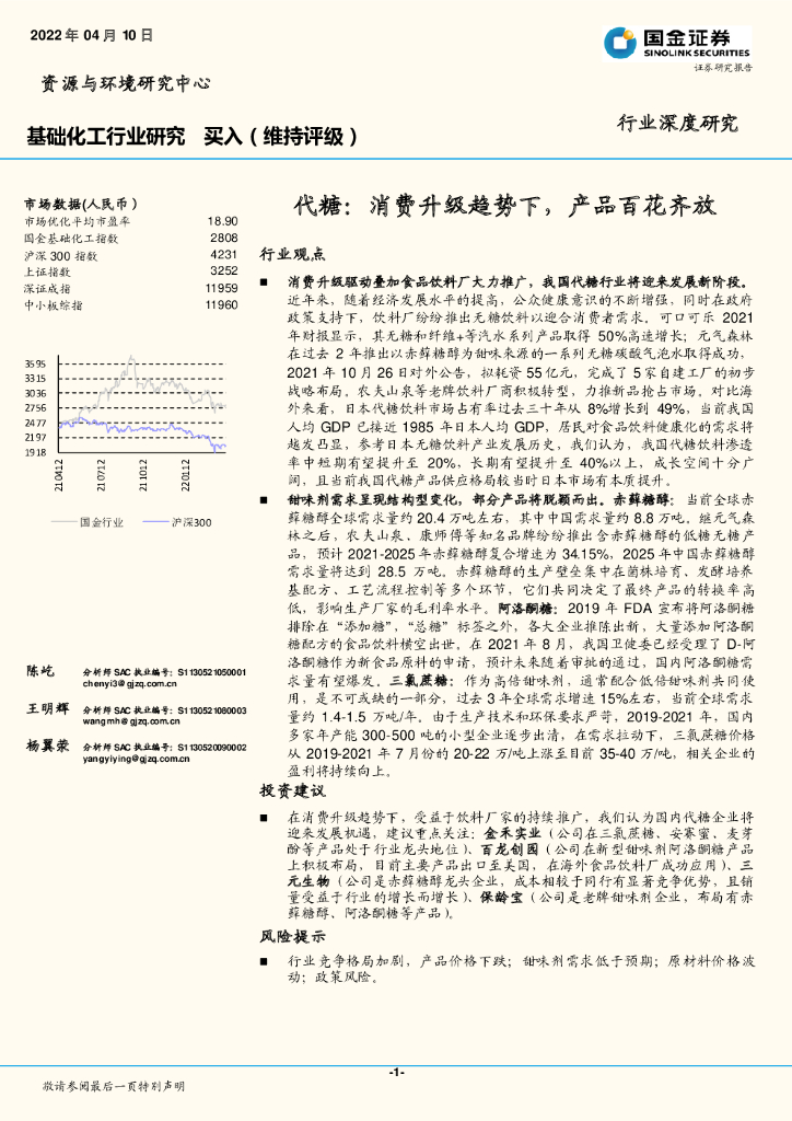国金证券:基础化工行业研究:代糖:消费升级趋势下,产品百花齐放.pdf