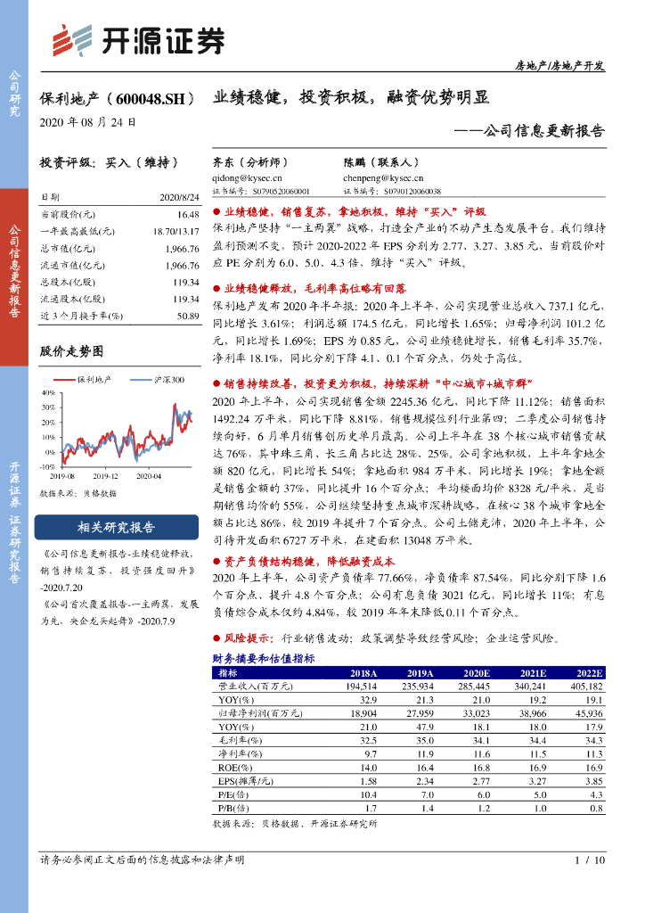 开源证券:保利地产(600048)-公司信息更新报告:业绩稳健,投资积极,融资优势明显.pdf