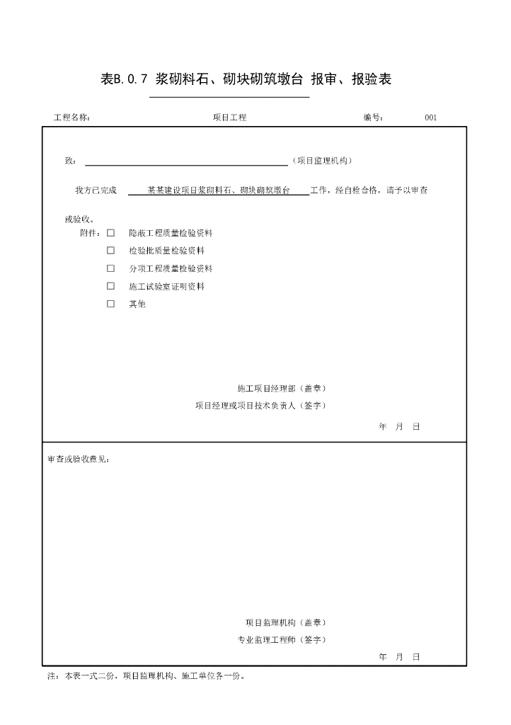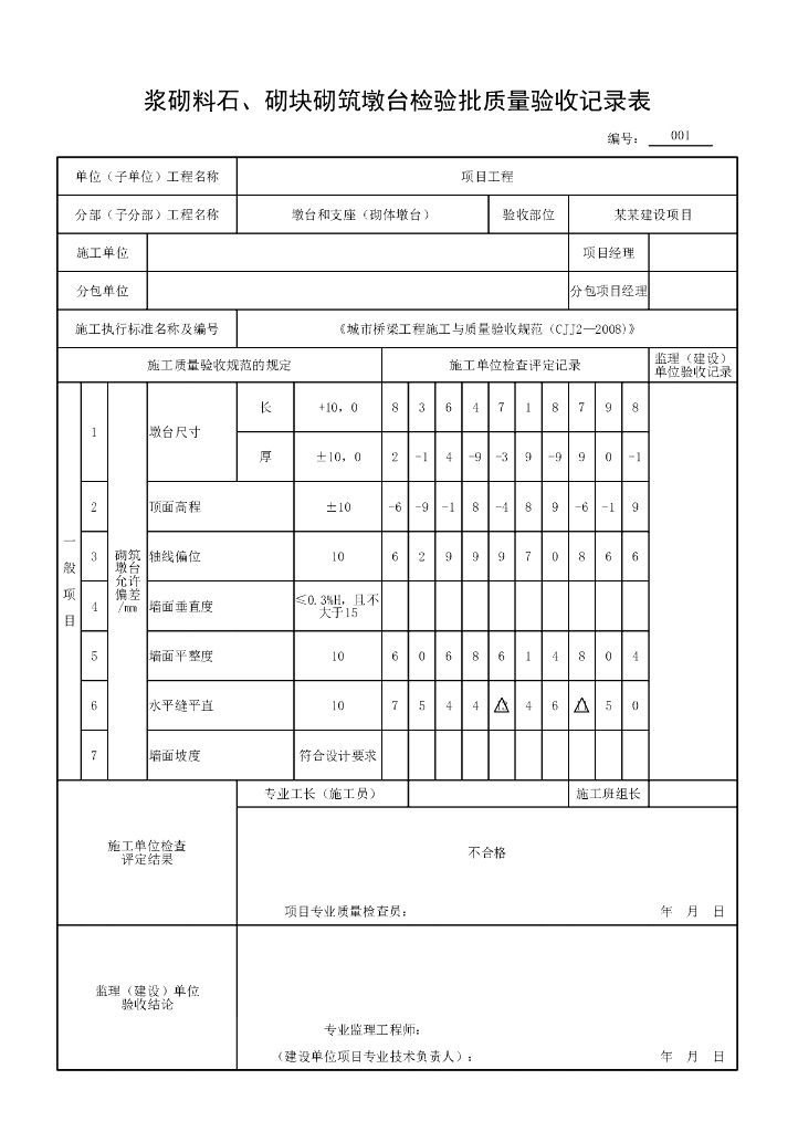 安徽城市桥梁工程砌体墩台验收记录表格.pdf