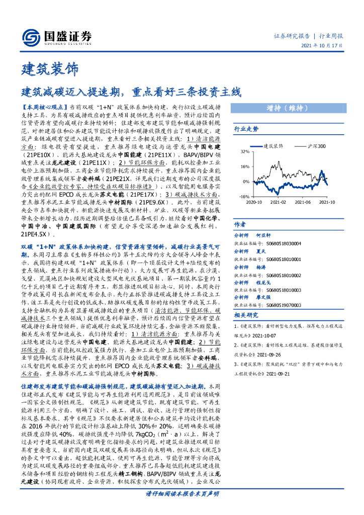 国盛证券:建筑装饰行业周报:建筑减碳迈入提速期,重点看好三条投资主线.pdf