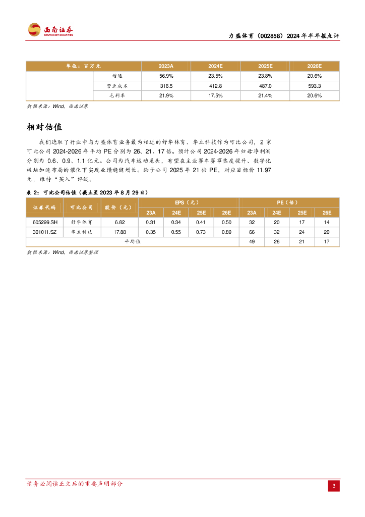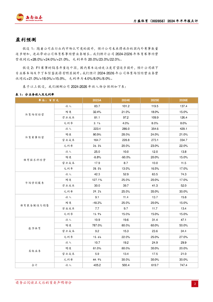 西南证券:力盛体育(002858)-2024年半年报点评:国内外业务稳健增长,期待公司赛事持续布局.pdf