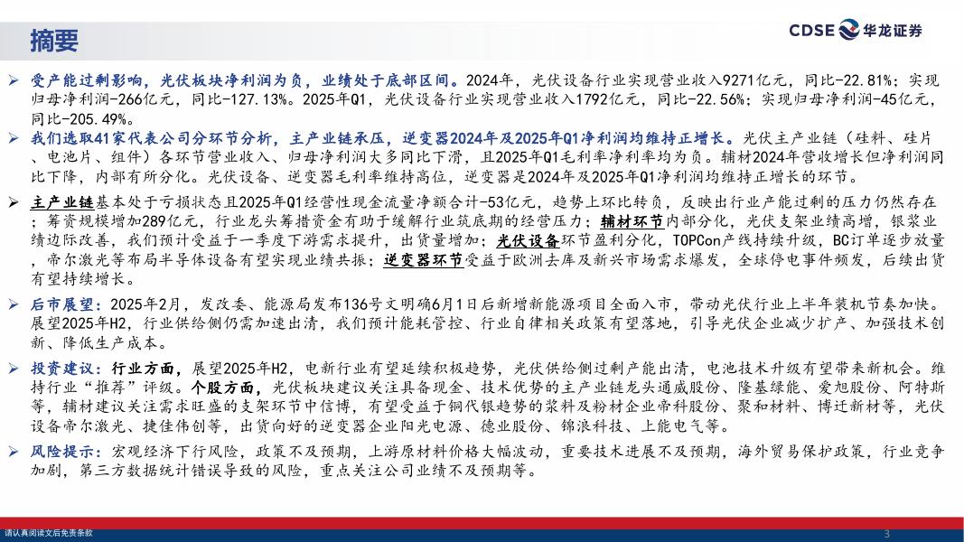 华龙证券:光伏行业2024年及2025年一季报业绩综述:光伏主产业链现金流承压,逆变器业绩高增.pdf