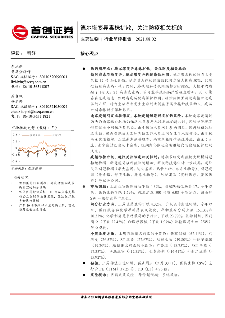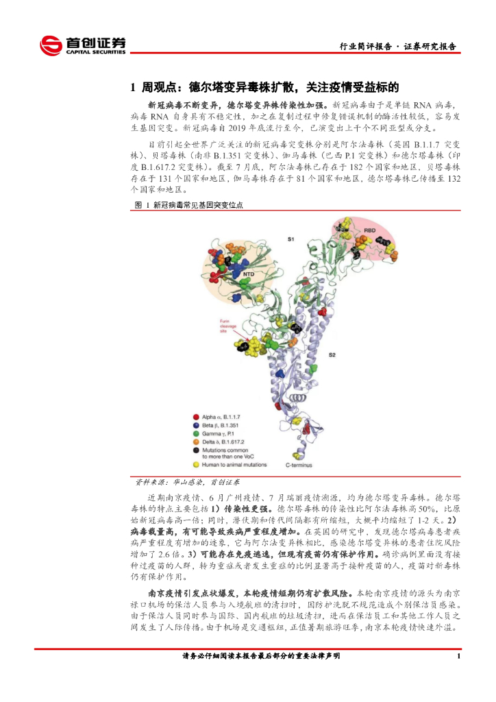 首创证券:医药生物行业简评报告:德尔塔变异毒株扩散,关注防疫相关标的.pdf