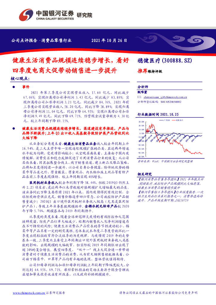 中国银河证券:稳健医疗——健康生活消费品规模连续稳步增长,看好四季度电商大促带动销售进一步提升.pdf