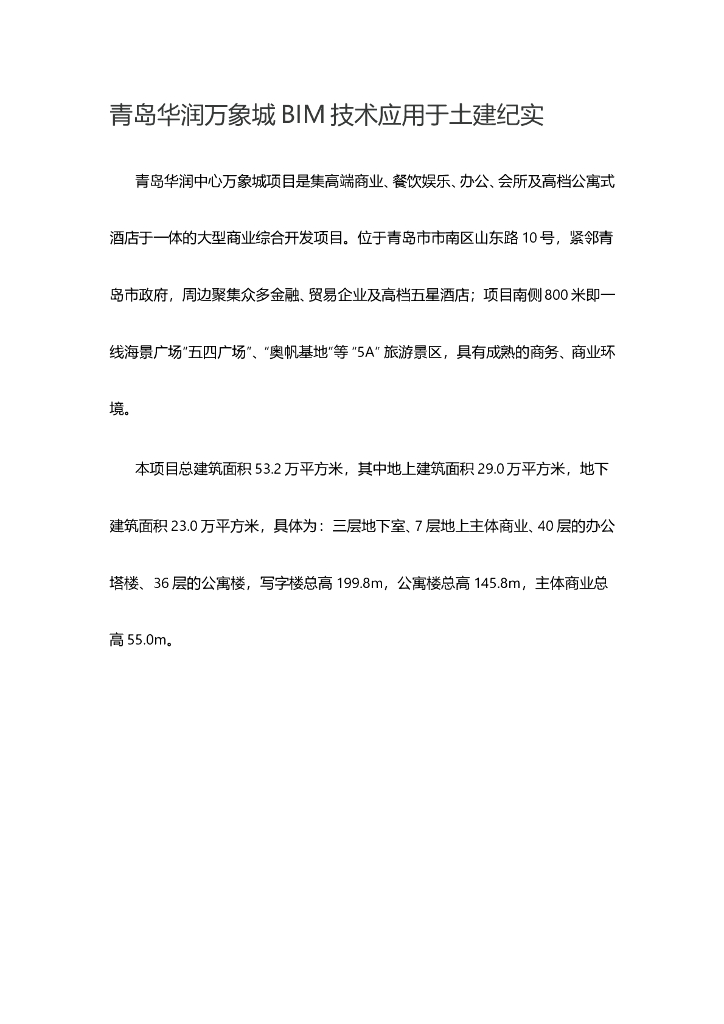 青岛知名地产万象城BIM技术应用于土建纪实.doc