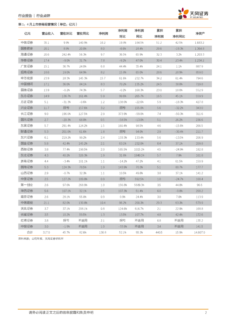 天风证券:证券:自营投资提振4月券商业绩,环比大增52%!.pdf