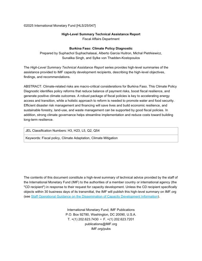 国际货币基金组织:2025年布基纳法索:气候政策诊断技术援助报告(英文版).pdf