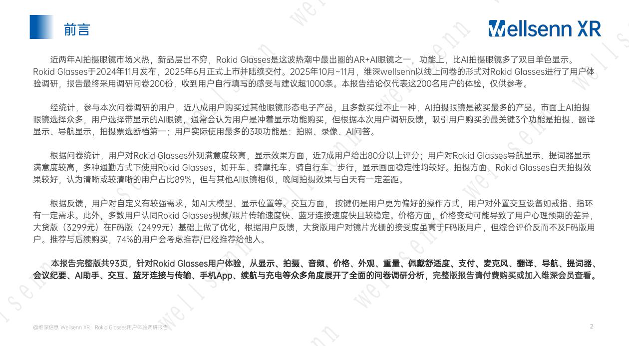 维深Wellsenn XR:2025年Rokid Glasses用户体验调研报告(简版).pdf