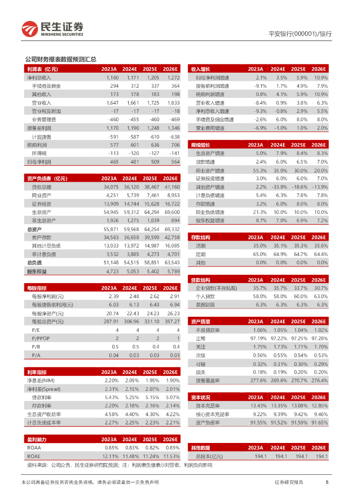 民生证券:平安银行(000001)-2023年年报点评:积极调整信贷结构,财富业务基础夯实.pdf
