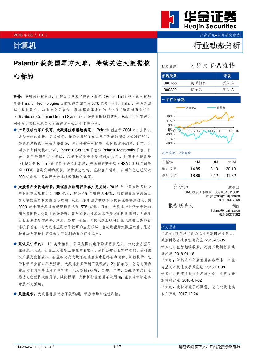 华金证券:计算机行业动态分析:Palantir获美国军方大单,持续关注大数据核心标的.pdf