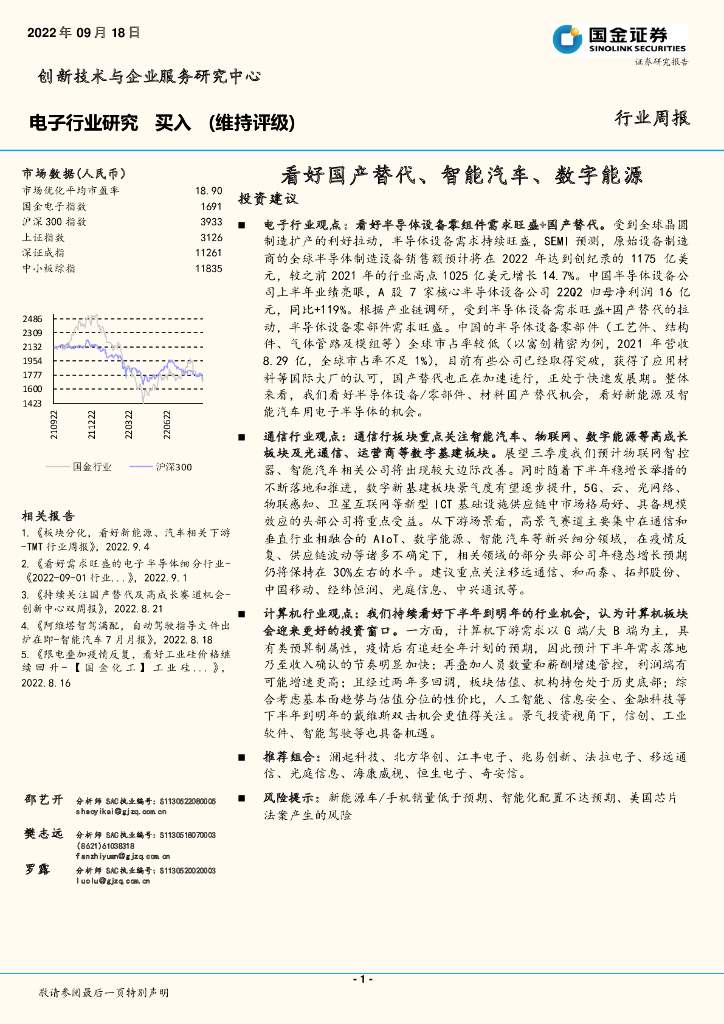 国金证券:电子行业研究:看好国产替代、智能汽车、数字能源.pdf