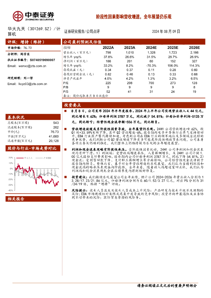 中泰证券:华大九天(301269)-阶段性因素影响营收增速,全年展望仍乐观.pdf