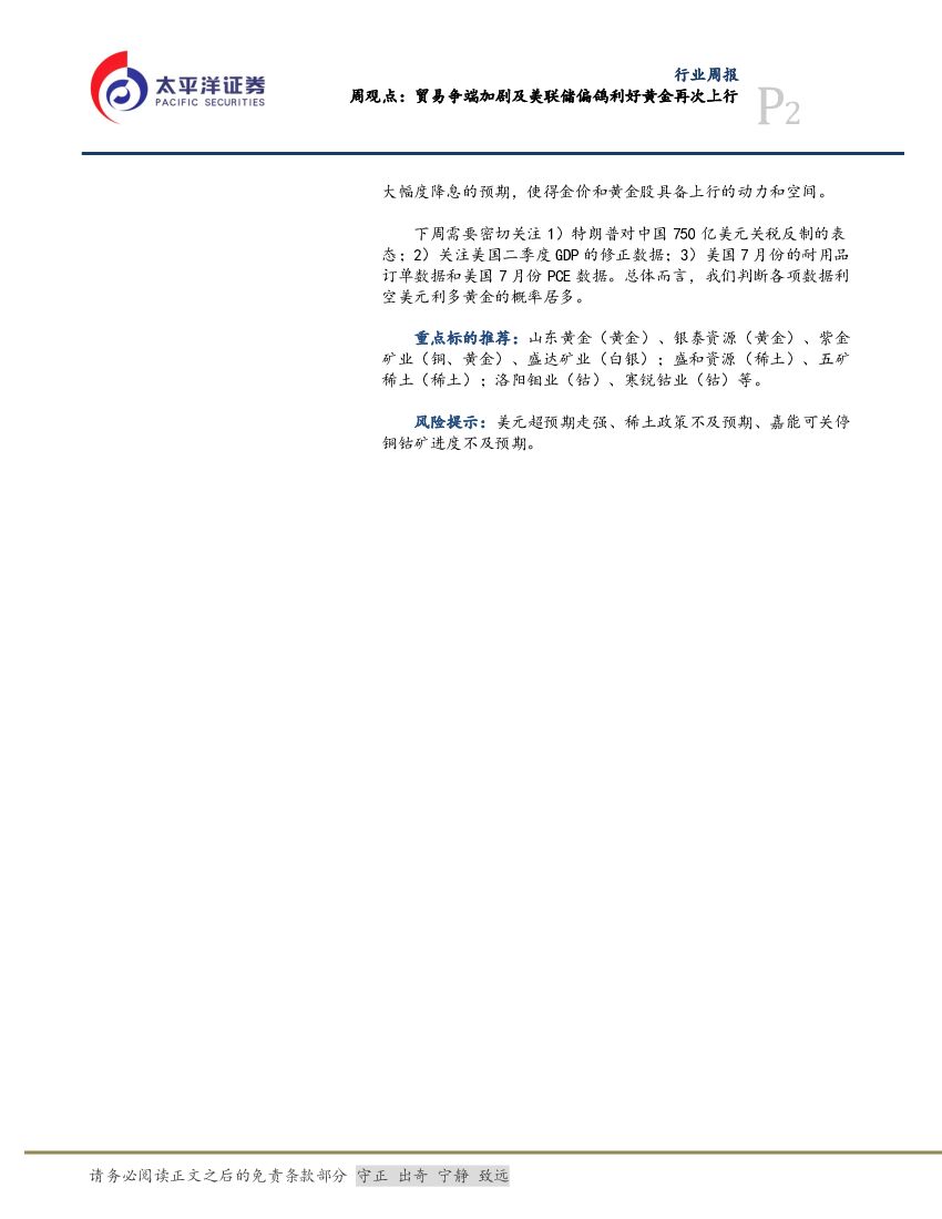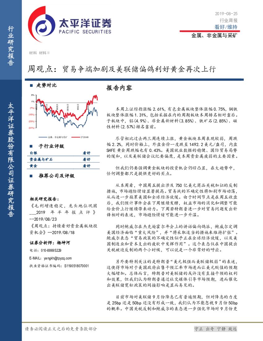 太平洋证券:金属、非金属与采矿周观点:贸易争端加剧及美联储偏鸽利好黄金再次上行.pdf