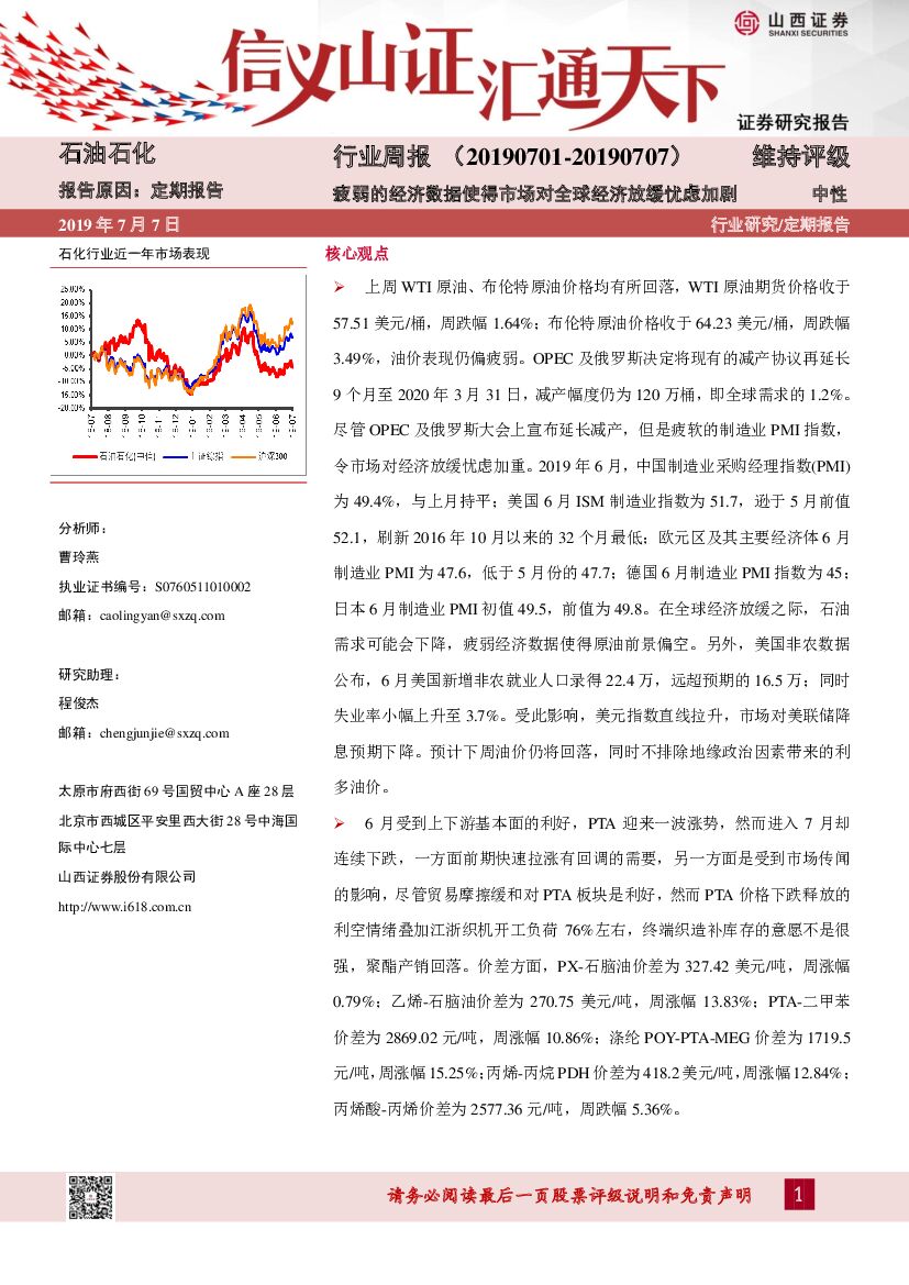 山西证券:石油石化行业周报:疲弱的经济数据使得市场对全球经济放缓忧虑加剧.pdf