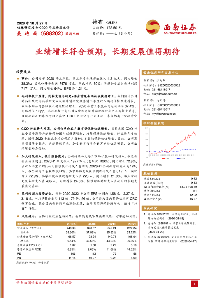 西南证券:美迪西(688202)-业绩增长符合预期,长期发展值得期待.pdf