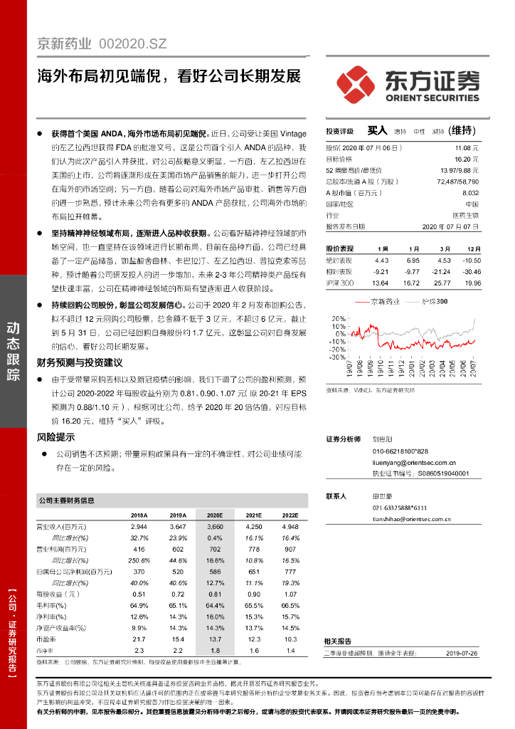东方证券:京新药业(002020)-海外布局初见端倪,看好公司长期发展.pdf