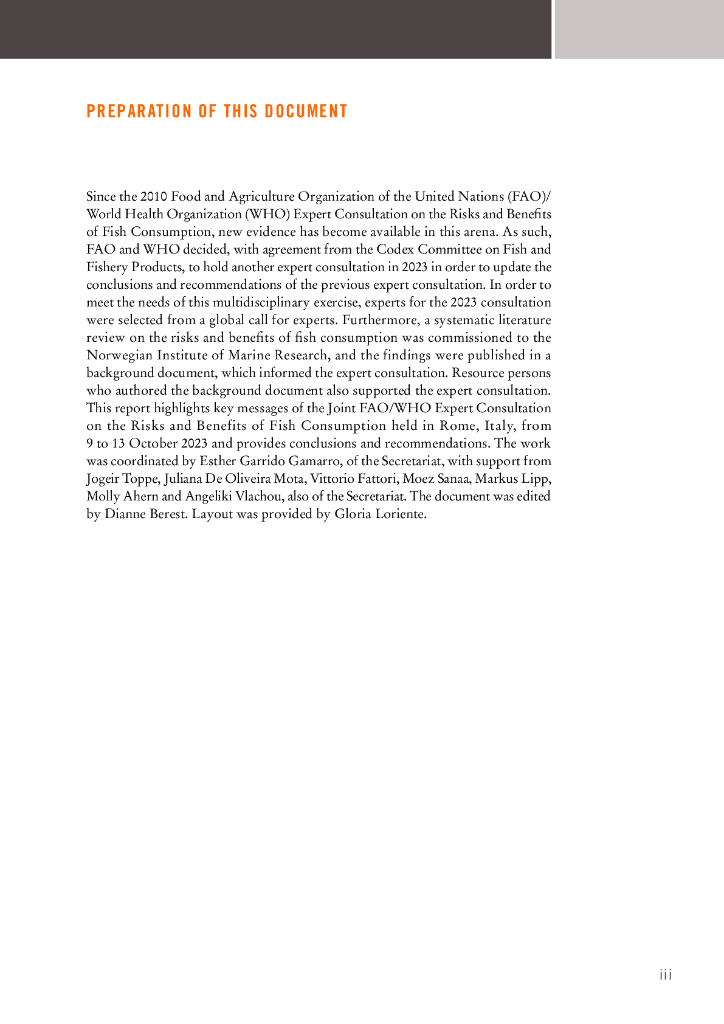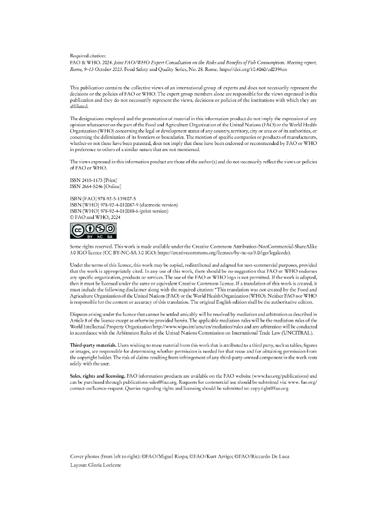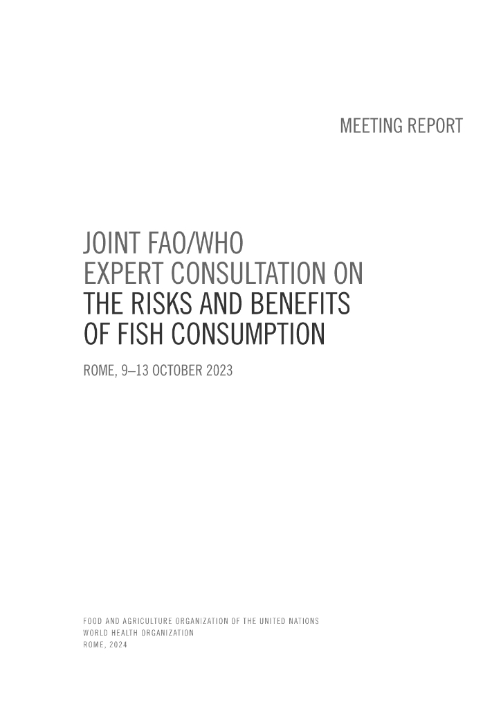 FAO联合国粮农组织:2024年粮农组织/世界卫生组织关于鱼类消费风险和益处的联合专家磋商会-会议报告(英文版).pdf