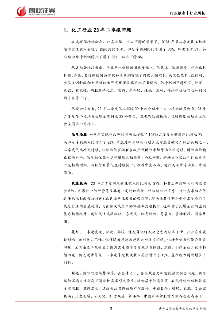 国联证券:化工行业2023年二季报回顾及周报:民爆、油服业绩持续提升,光刻胶板块持续走高.pdf