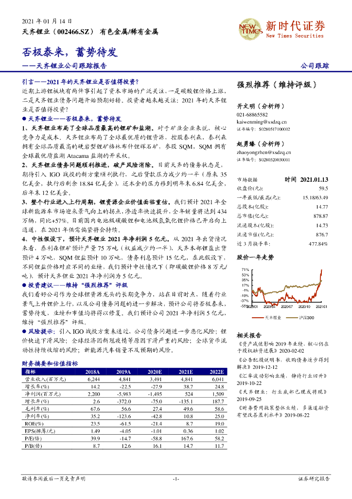 新时代证券:天齐锂业公司跟踪报告:否极泰来,蓄势待发.pdf