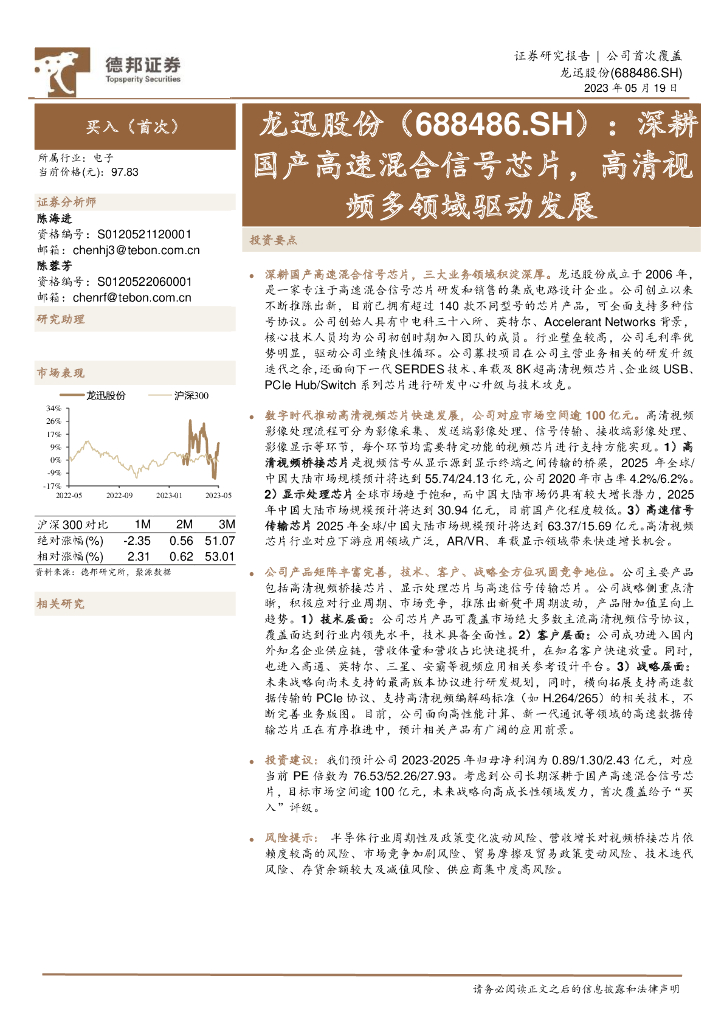 德邦证券:龙迅股份(688486)-深耕国产高速混合信号芯片,高清视频多领域驱动发展.pdf