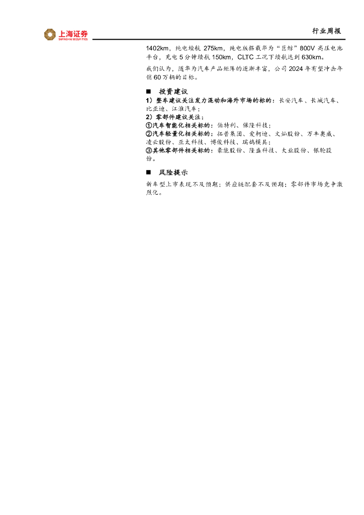 上海证券:汽车与零部件行业周报:小米SU7首次亮相,华为M9正式上市.pdf