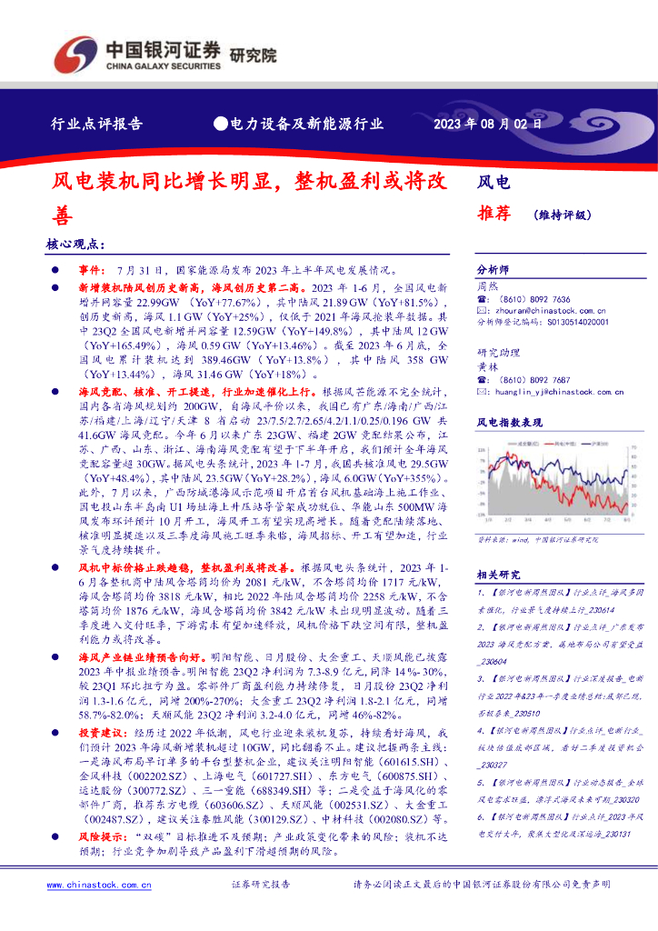 中国银河:风电装机同比增长明显,整机盈利或将改善.pdf