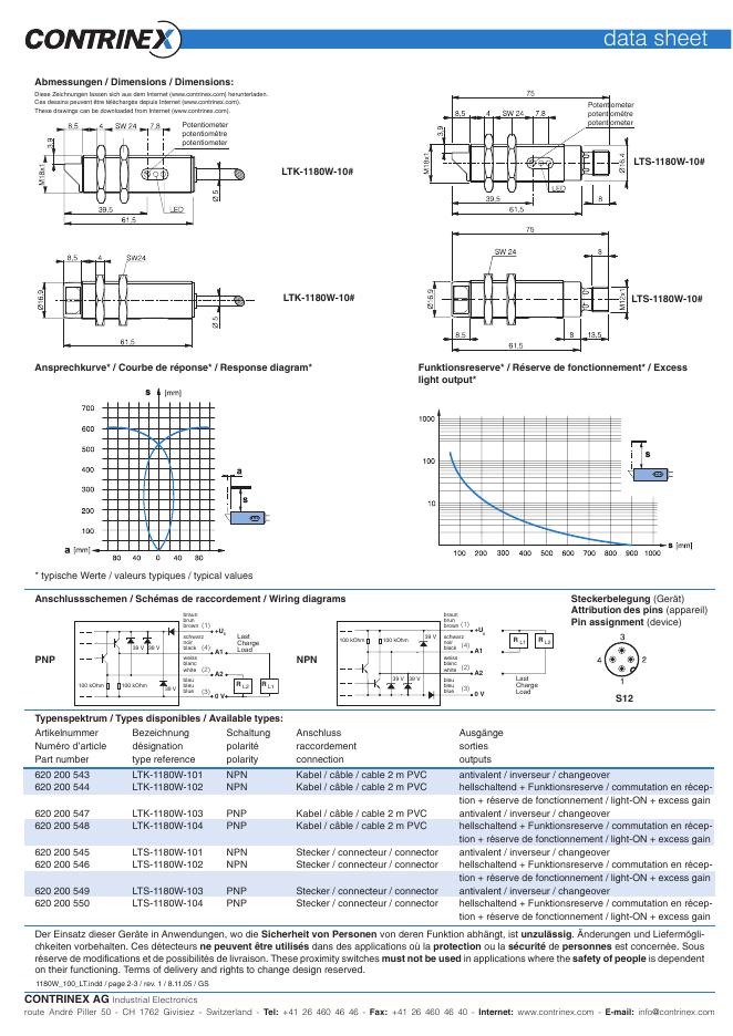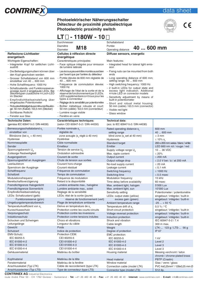 CONTRINEX LT - 1180W - 10 Photoelektrischer Näherungsschalter Détecteur de proximité photoélectrique Photoelectric proximity switch 数据手册.pdf