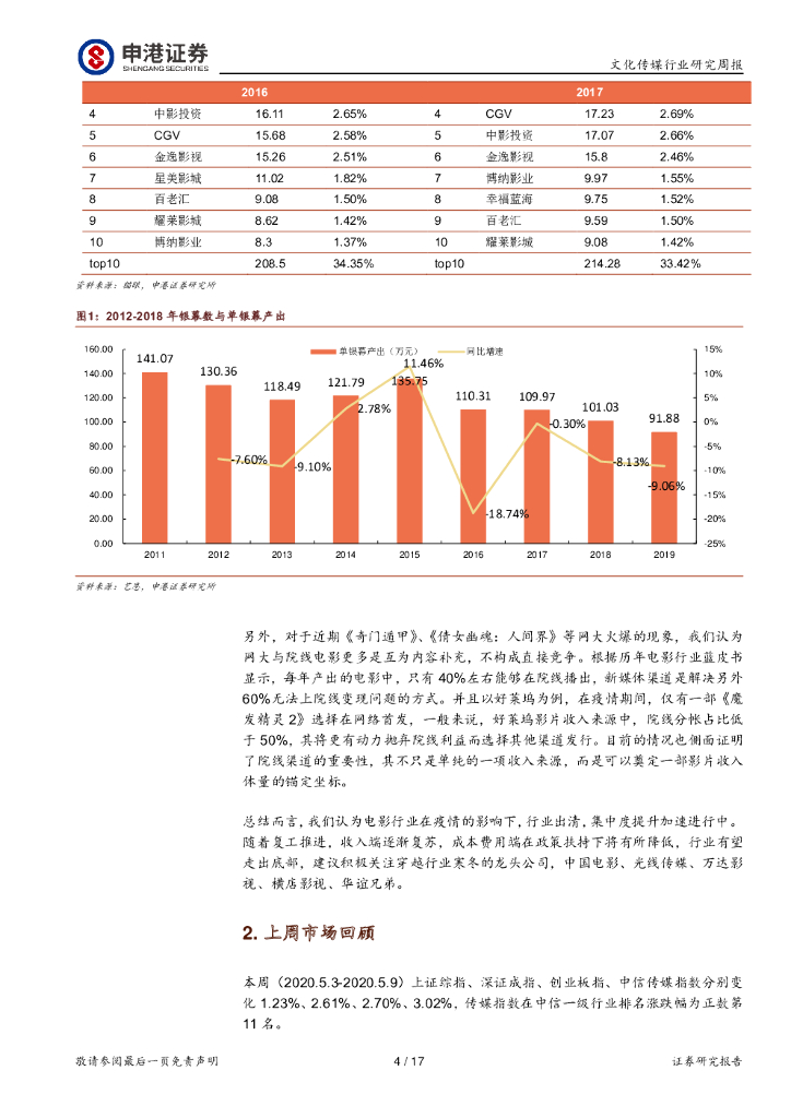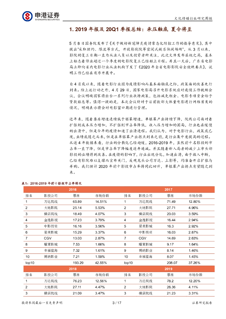 申港证券:文化传媒行业周报:政策托底已至 关注影院复工.pdf