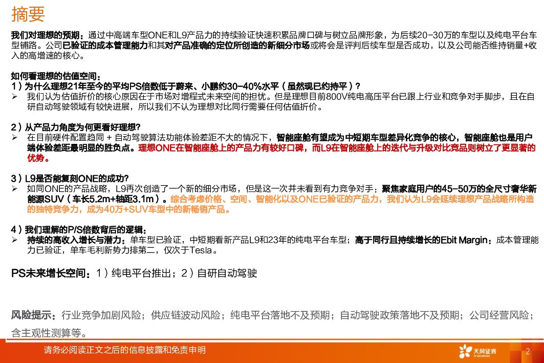 天风证券:汽车行业深度研究:理想汽车-从One和L9的产品产略看理想未来双平台的增量.pdf