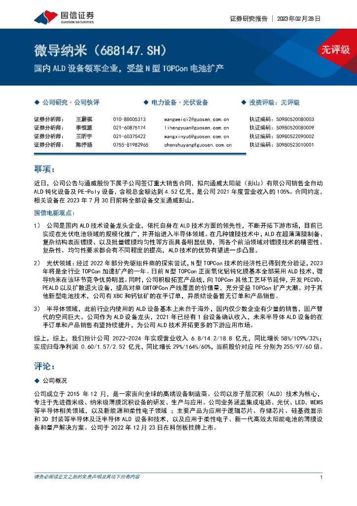 国信证券:微导纳米(688147)-国内ALD设备领军企业,受益N型TOPCon电池扩产.pdf