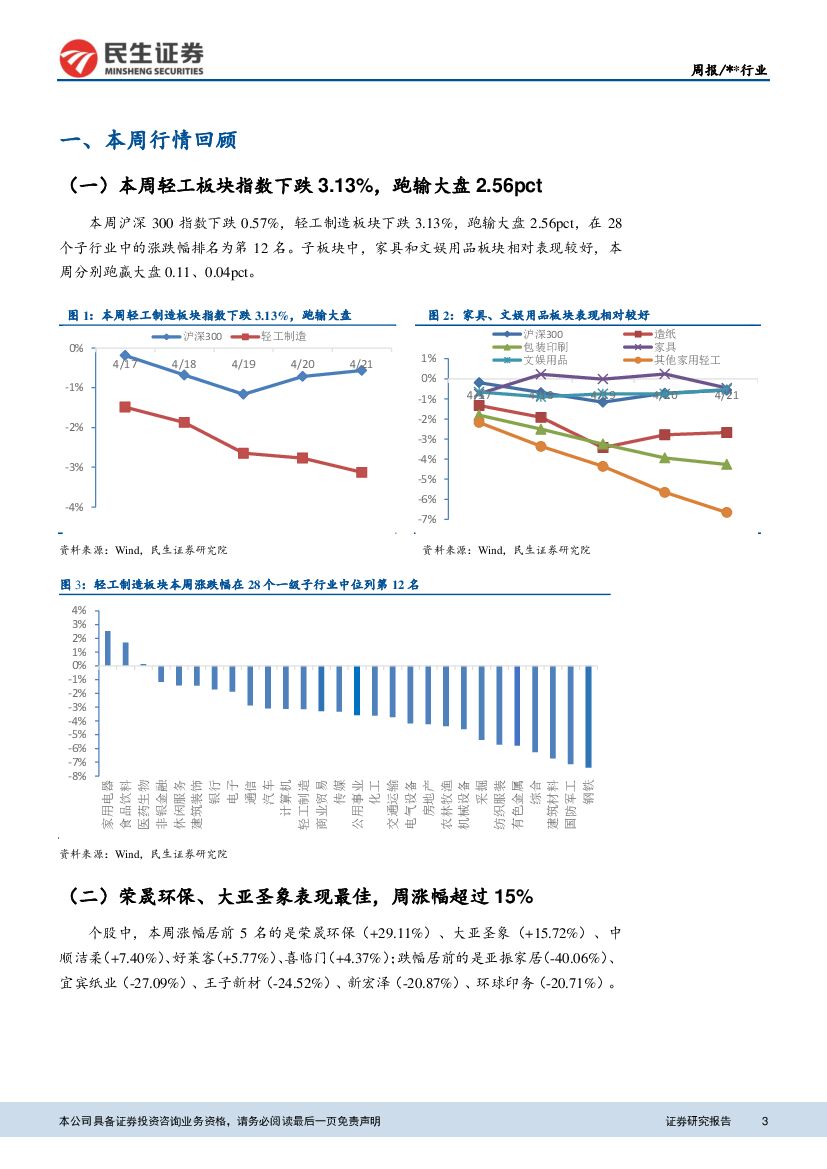 民生证券:轻工制造行业周报:家具板块走势领跑行业,纸企一季度业绩靓丽.pdf