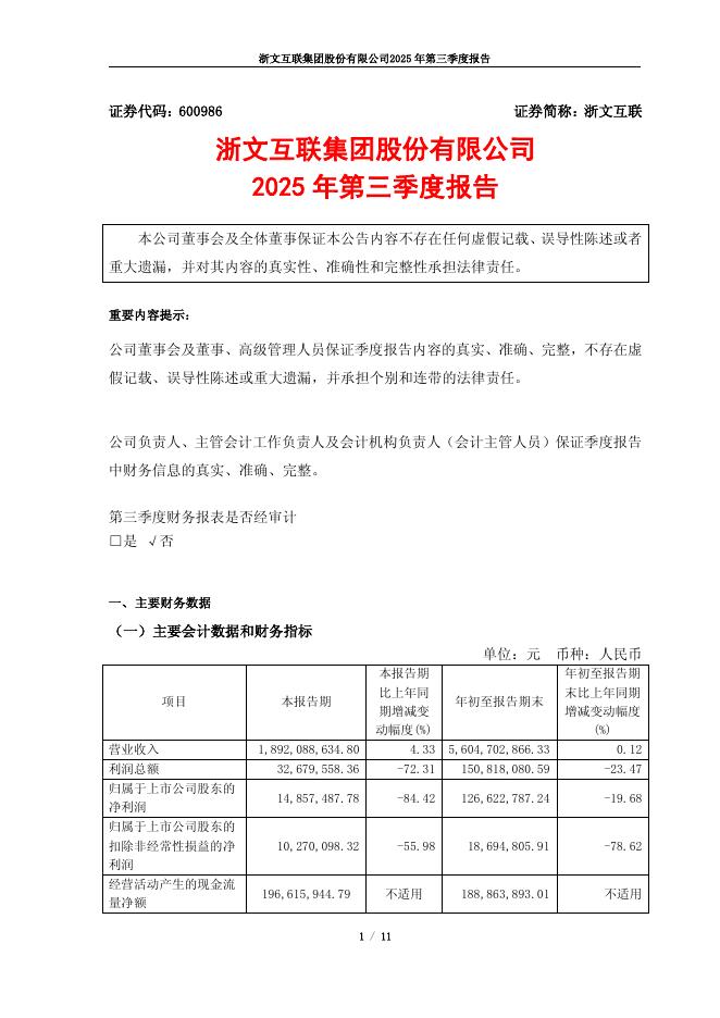 600986-浙文互联:浙文互联2025年第三季度报告.pdf