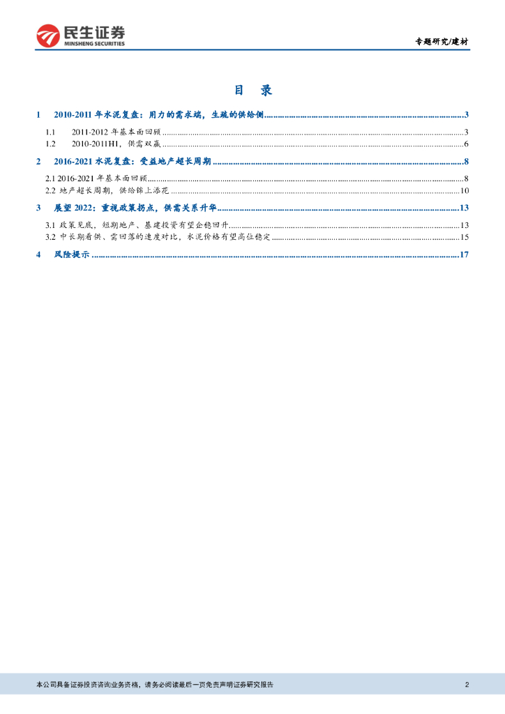 民生证券:建材:水泥复盘与展望,供需关系的层层升华.pdf