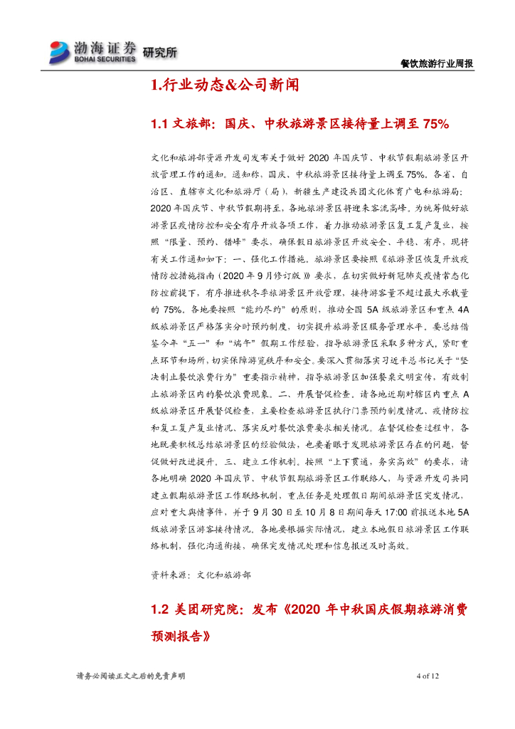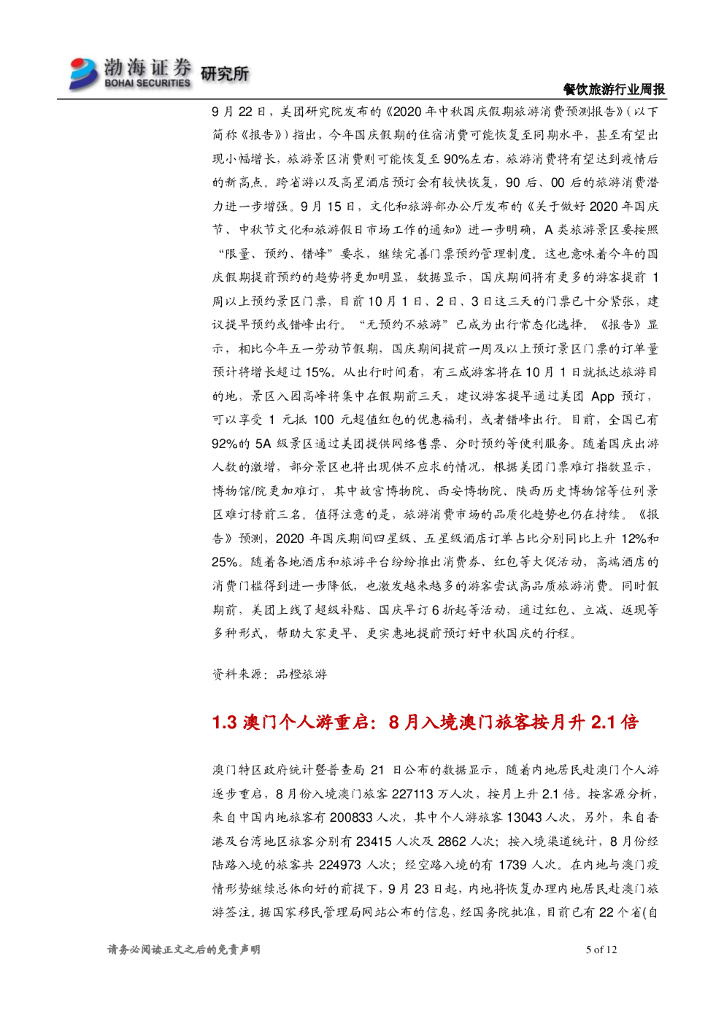 渤海证券:餐饮旅游行业周报:景区接待量再次上调 美团发布国庆旅游消费报告.pdf