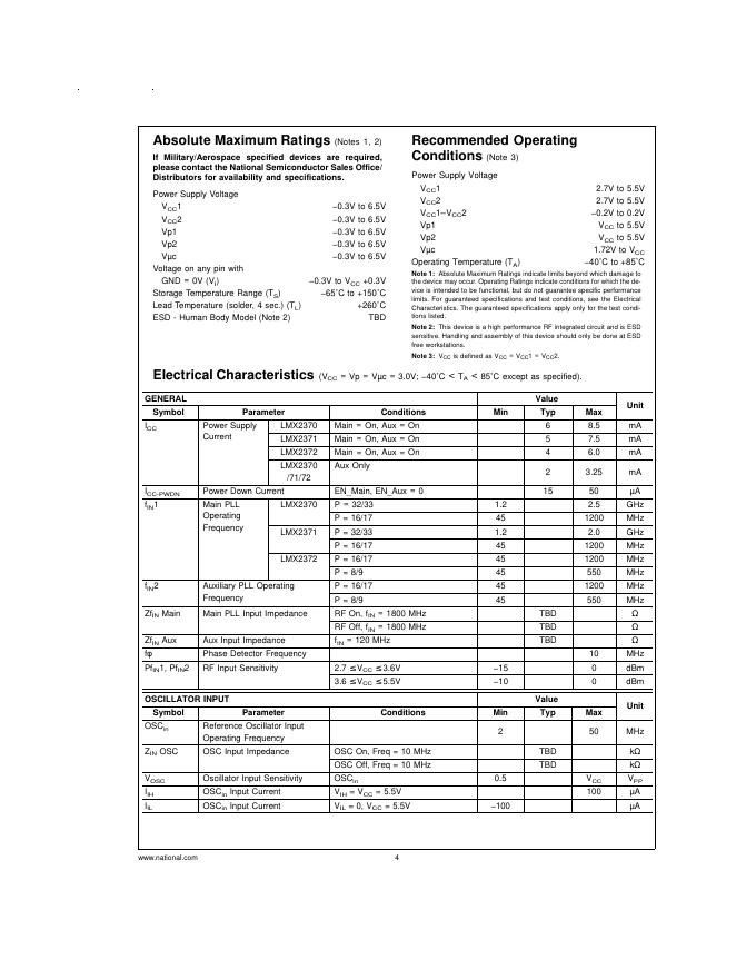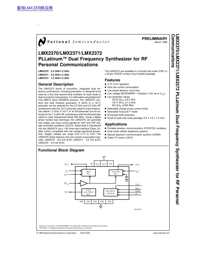 National LMX2370/LMX2371/LMX2372 数据手册.pdf