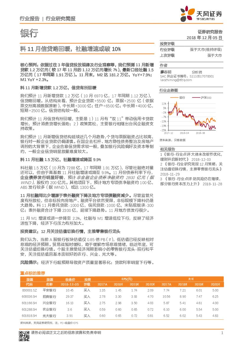 天风证券:银行行业研究简报:料11月信贷略回暖,社融增速或破10%.pdf