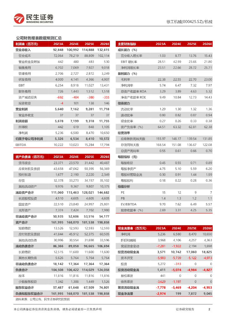 民生证券:徐工机械(000425)-2024年中报点评:海外开拓量利双增,运营质量持续提升.pdf