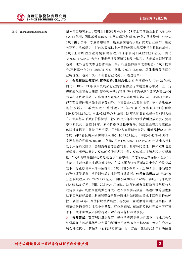 山西证券:食品饮料23年年报&24Q1季报总结及中期展望:白酒业绩分化,大众品底部复苏.pdf