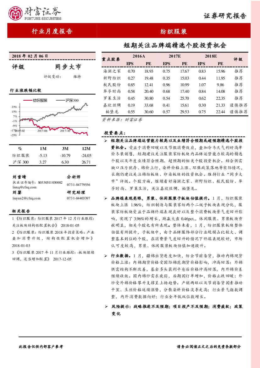 财富证券:纺织服装行业月度报告:短期关注品牌端精选个股投资机会.pdf