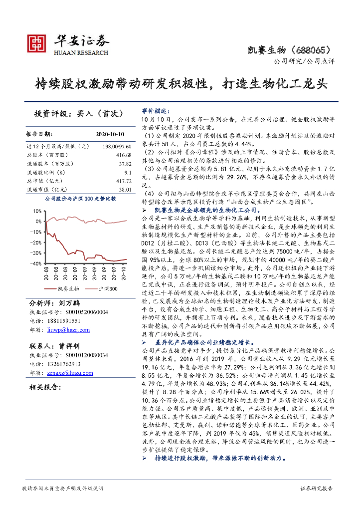 华安证券:凯赛生物(688065)-持续股权激励带动研发积极性,打造生物化工龙头.pdf