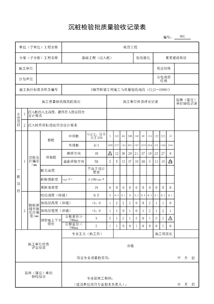 安徽城市桥梁沉入桩质量验收记录表格29P.pdf
