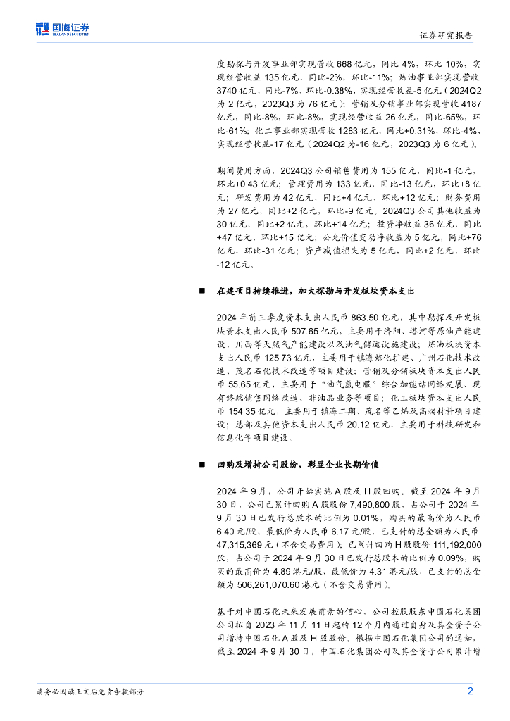 国海证券:中国石化(600028)-公司动态研究:油价下跌影响Q3业绩,回购增持彰显长期价值.pdf
