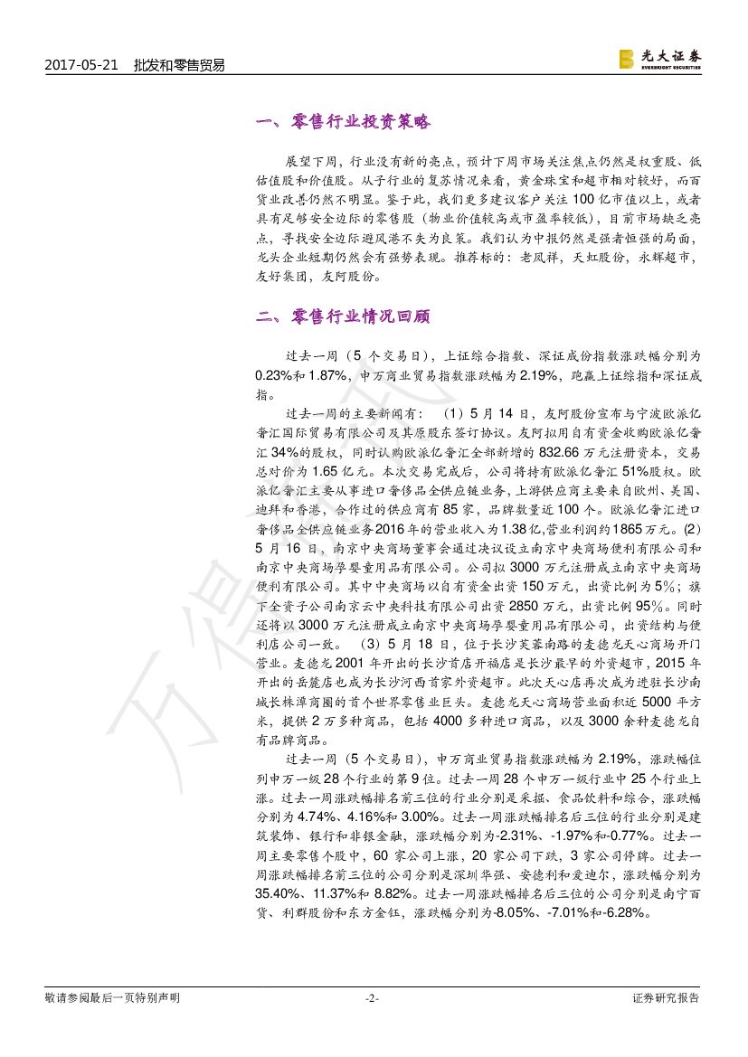 光大证券:零售行业周报第193期:寻找安全边际,龙头企业有优势.pdf