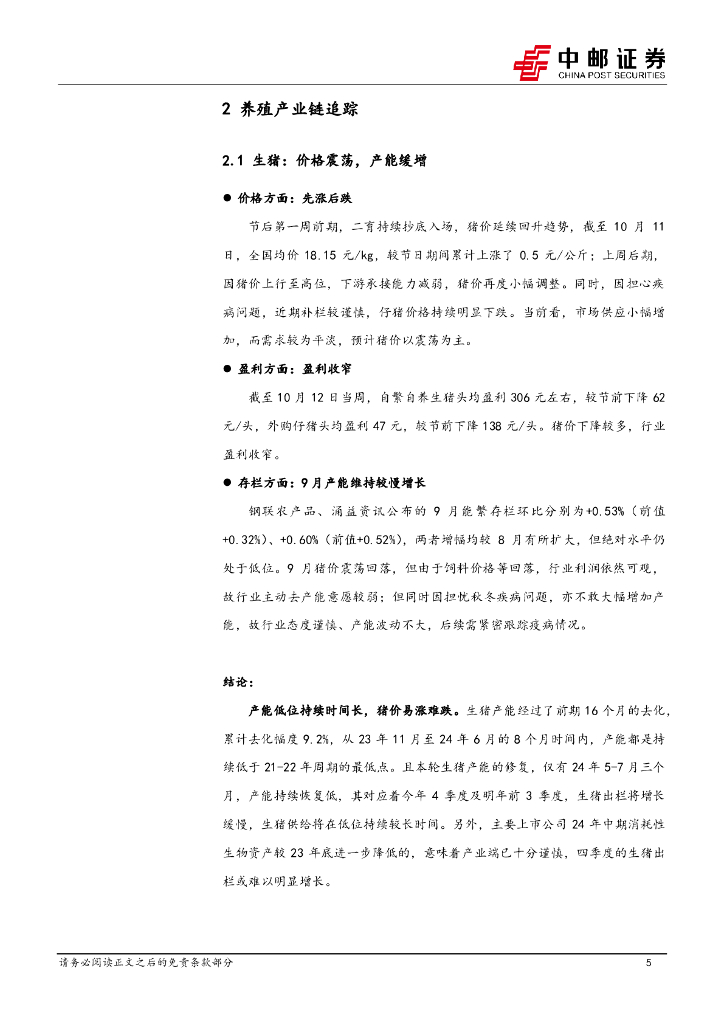中邮证券:农林牧渔行业报告:猪价震荡,9月产能依然增加缓慢.pdf